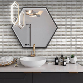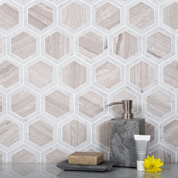 This dynamic shape adds a touch of intrigue and can be used on walls or vanity backsplash. Stick to a neutral-toned modern marble bathroom tile to help keep the focus on the pattern.