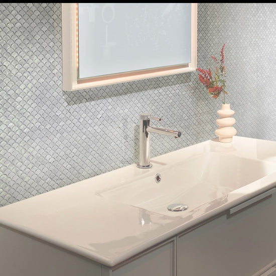 Use this curved shape bathroom shower tile and create a sense of movement to your shower space. The scallop tiles are a perfect match for the overall look of your bathroom.