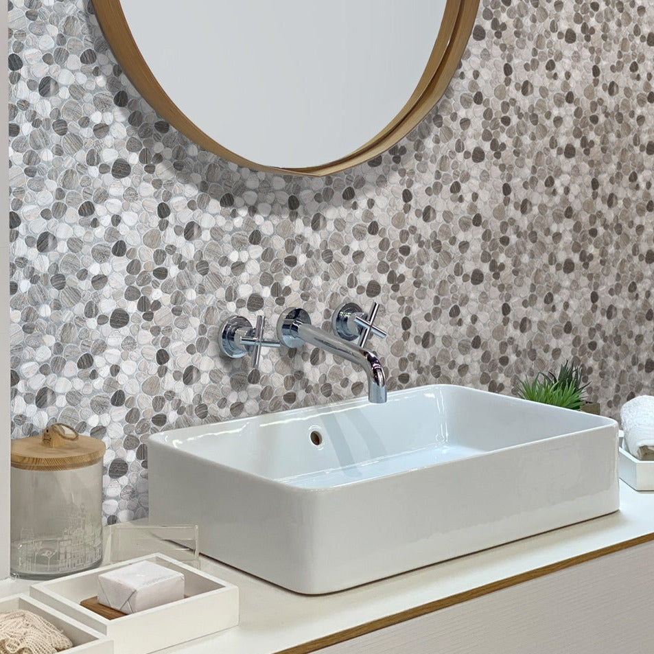 2. Bring the Outdoors In with Pebble Tiles