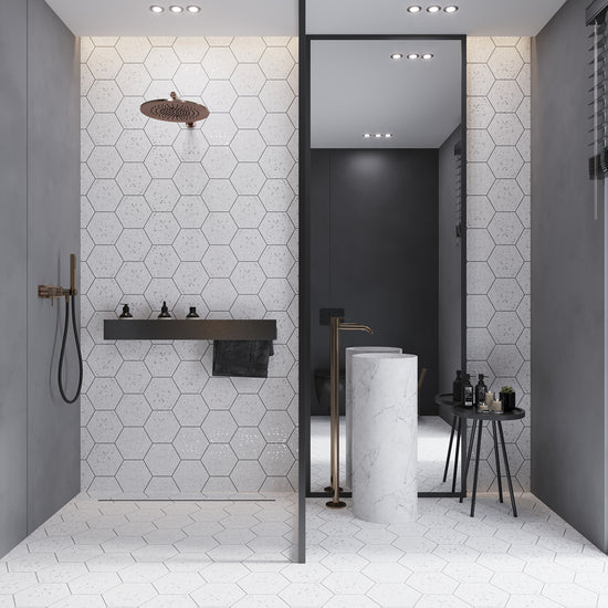 Bore with rectangular or square shape tile? Hexagon tiles are here to make magic. These shower tiles will add a geometric accent to your bathroom. Their classic yet fresh design complements various design styles.
