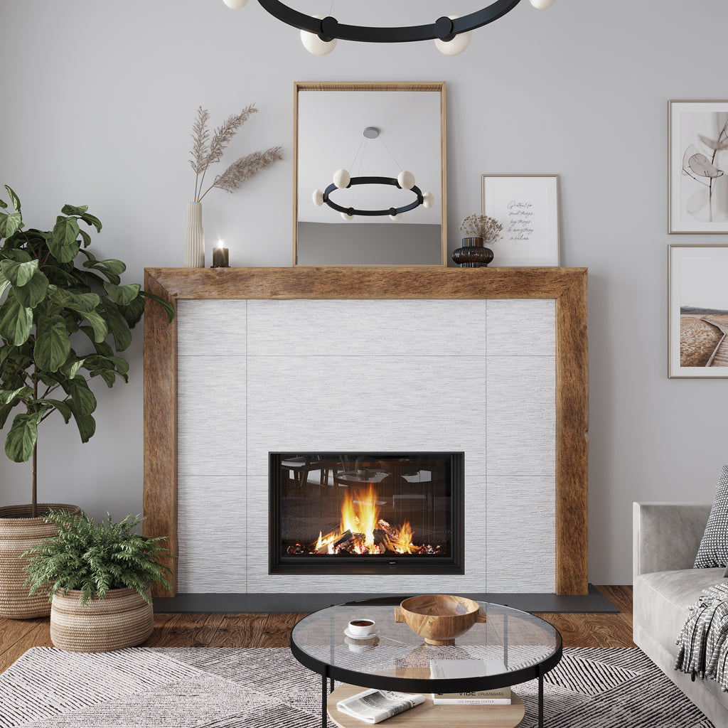Remember when we said texture and natural materials are essential for farmhouse fireplace surround design? Well, that’s the case with linen-look tiles! Bring a touch of woven elegance into your home with tiles reminiscent of the soft, fabric-like grain of textile. Consider an off-white shade to add brightness and a sense of openness without taking away from the enveloping feel of farmhouse décor. The goal is to shape a space beaming with character, which is exactly what White 24x48 Textured Porcelain Large Format Tile will do for you!