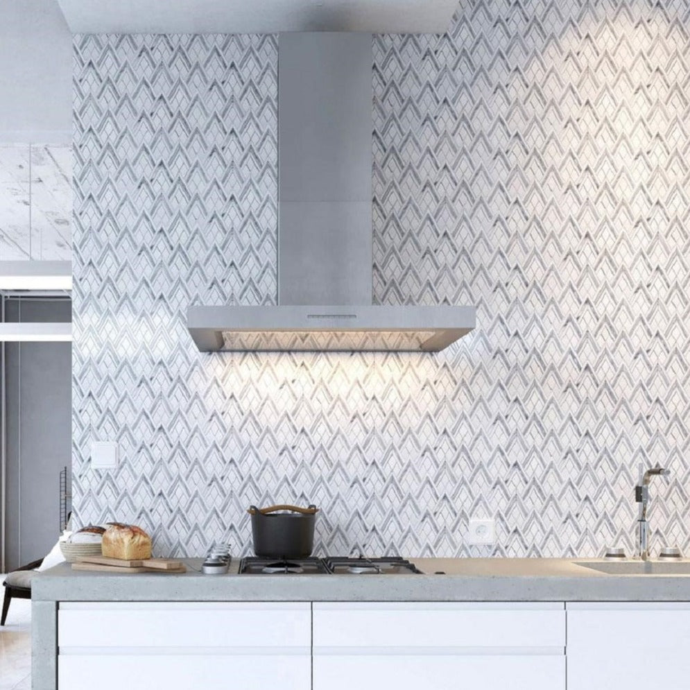 A. Herringbone Tile Pattern: Also called a fishbone pattern or a chevron variant (though Chevron differs slightly with mitered edges). Add texture and depth to your space with this zigzag effect that can be laid both horizontally and vertically.