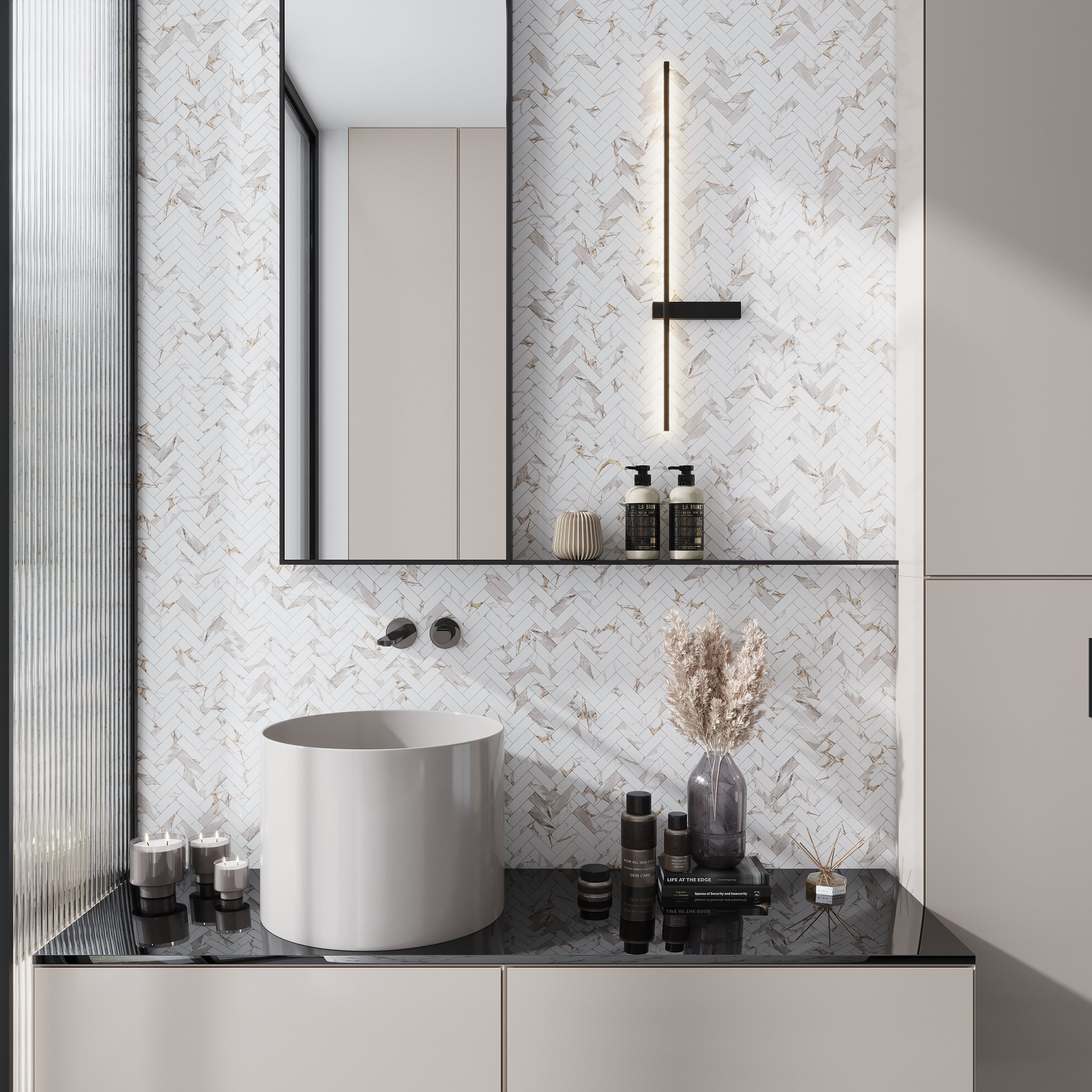 Herringbone Porcelain Mosaic Tile