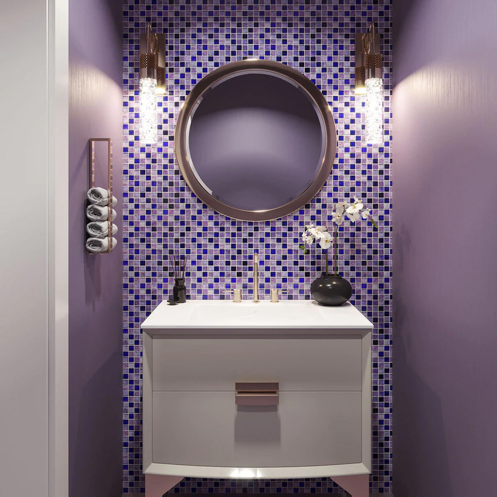 If you’re worried jewel-toned tiles might be a short-lived trend, fret not! Valiant, saturated color palettes that draw inspiration from the 70s and 80s inject glamor and cozy in equal measures. From sapphire blue to amethyst purple, energetic hues have a lasting presence that anchors the room. Consider Purple 11.8 in. x 11.8 in. Square Polished Glass Mosaic Tile for major style impact in kitchens and bathrooms.