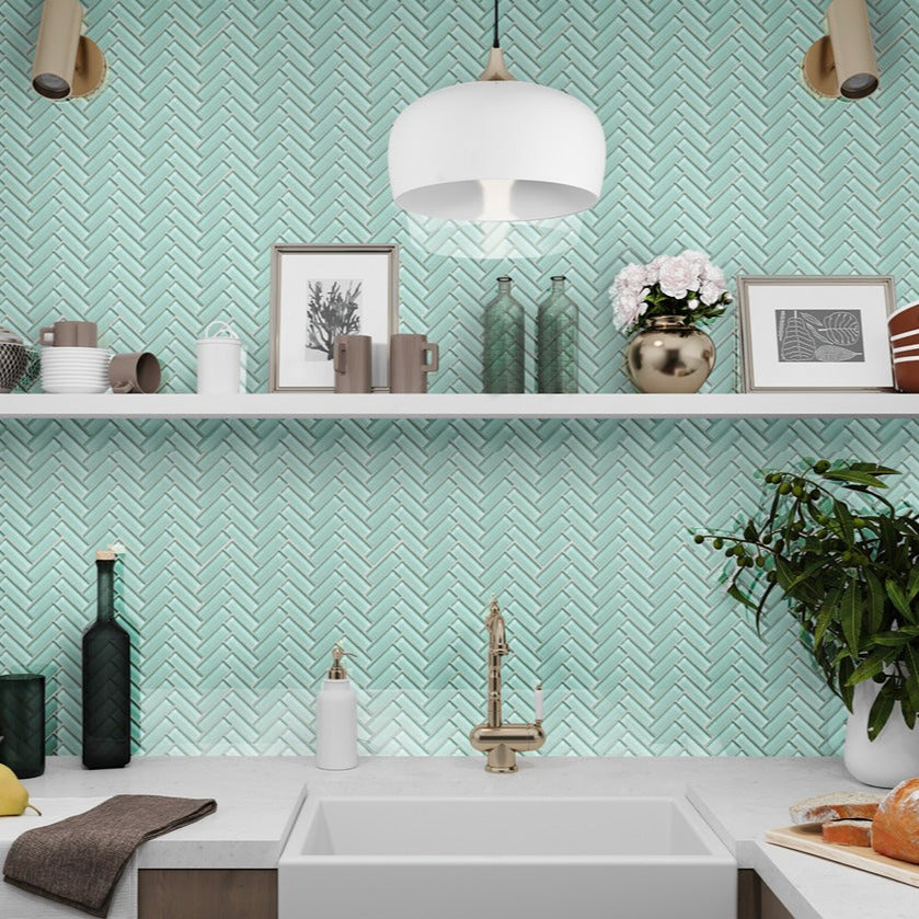 Herringbone tile is installed in a zigzag pattern that results in a more attractive floor or wall in your tiled outdoor kitchen. The pattern adds movement and detail to the space, giving it a chic, luxurious look. Install our Blue White 11x12 Polished Herringbone Marble Mosaic Tile for a blend of timeless character and modern style to your outdoor setup.