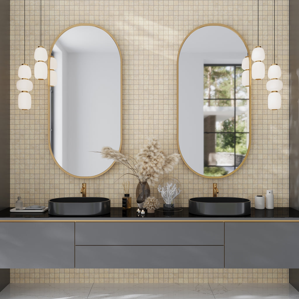 Farmhouse tiles usually come with soft colors, vintage patterns, or rustic textures that will make your outdoor tiled kitchen warm and inviting. They are ideal for creating a comfortable, country-themed space that is both stylish and cozy. The tiles can be placed on floors, walls, or backsplashes to provide a traditional look to any backyard setting. Enhance your outdoor area with our Beige 12x12 Polished Etched Marble Mosaic Tile.