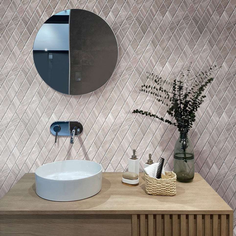 Our Diamond Tiles are pleasing, offer practicality for outdoor applications. They are resilient and low-maintenance, and are suitable for patios. The fusion of two styles in a diamond pattern creates captivating interest, texture, and graphic impact, instantly transforming dull, neutral areas. Consider this Wooden Gray 12x12 Polished Diamond Marble Mosaic Tile, crafted from marble, This is an excellent choice as patio tile.