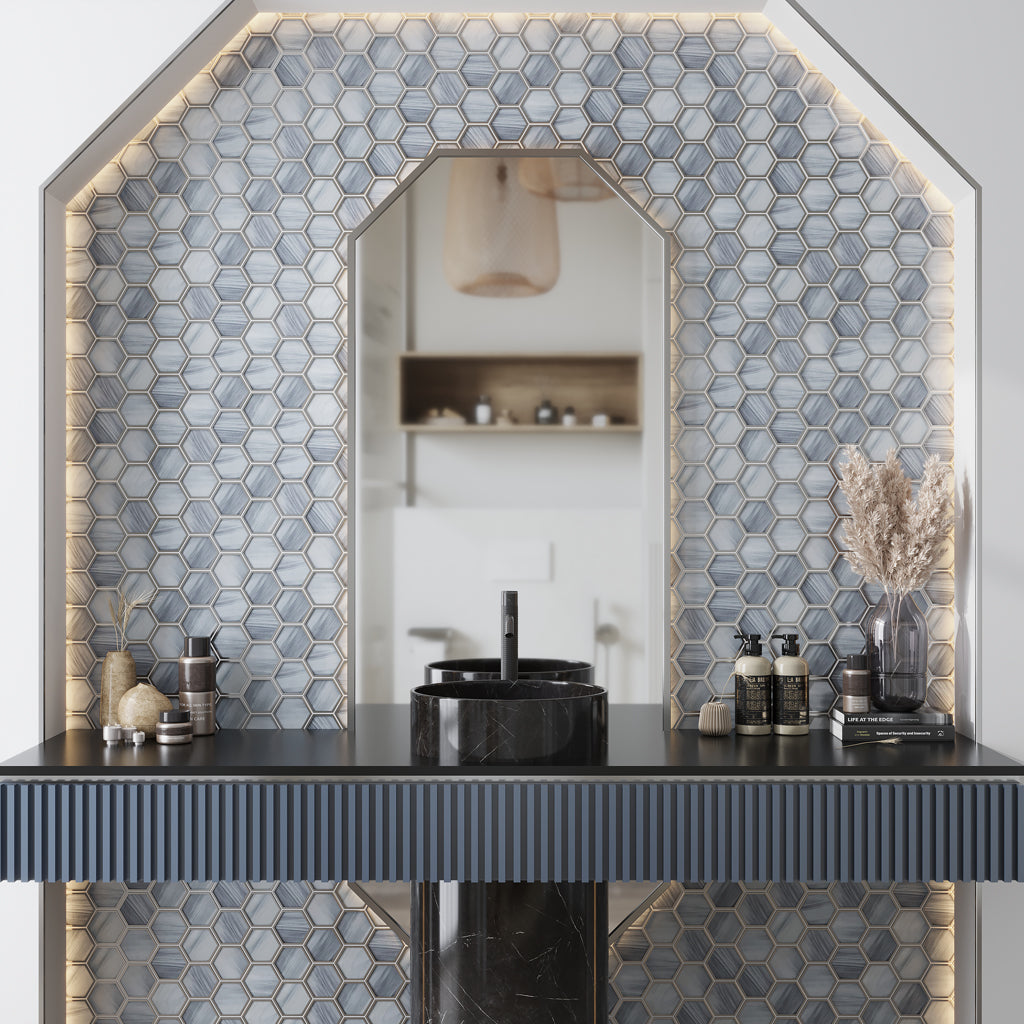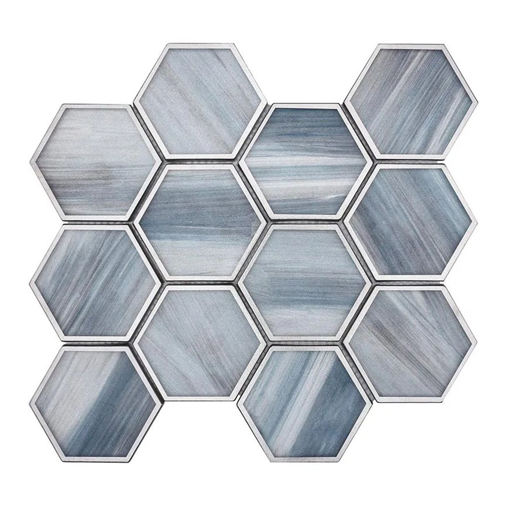 Light Frost Blue 9x10 Matte Hexagon Glass Mosaic Tile