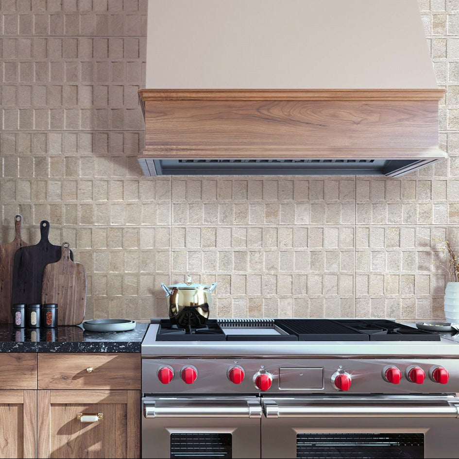 Large format tile reduces grout lines, contributing to a cleaner and smoother appearance. Use light-colored porcelain or ceramic tiles for a sense of openness. Small kitchen backsplash ideas using oversized tiles result in a modern or contemporary finish. Try our Stone Beige 12x24 Matte Porcelain Large Format Tile to achieve a seamless finish.