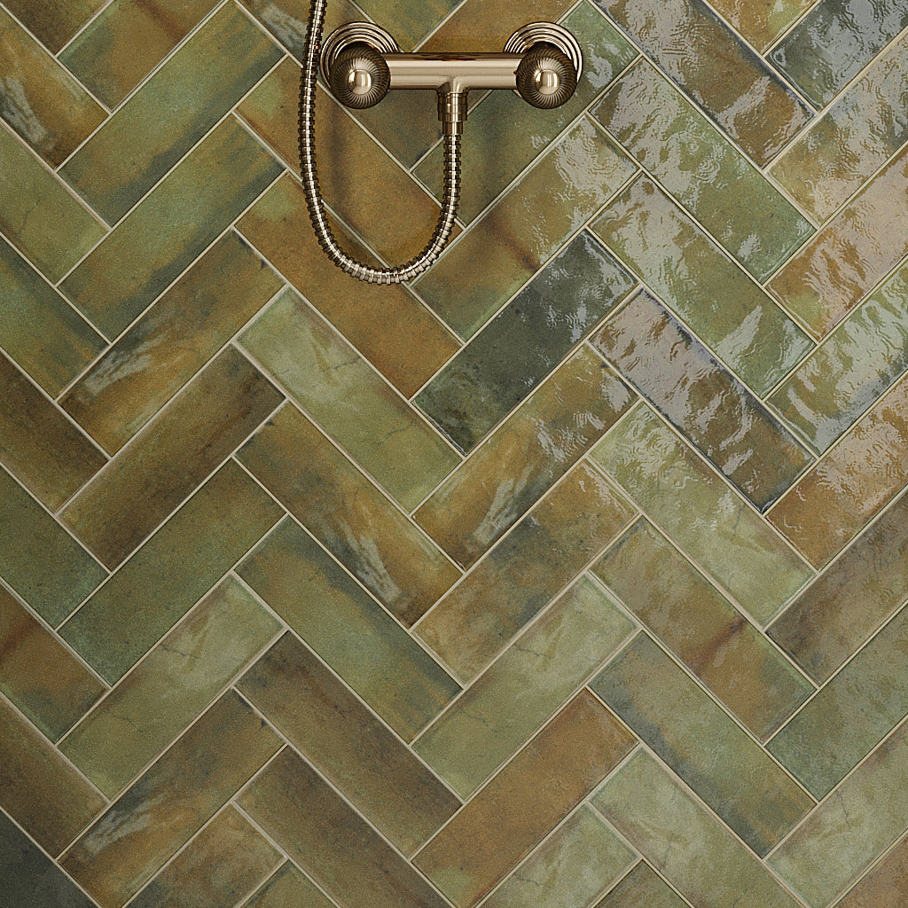 While farmhouse fireplace tile ideas often trade in rustic, natural materials that patina with the years, they can also be imagined in clean, straight lines that exude simplistic elegance. Enter subway tiles—a timeless choice that effortlessly accentuates the allure of a fireplace. Picture textured white subway pattern set vertically to make the centerpiece appear even taller. Or take a cue from the outside world and opt for an earthy-colored tile, especially one that’s as imposing as our Olive Green 2.5x8 Glossy Ceramic Subway Tile!