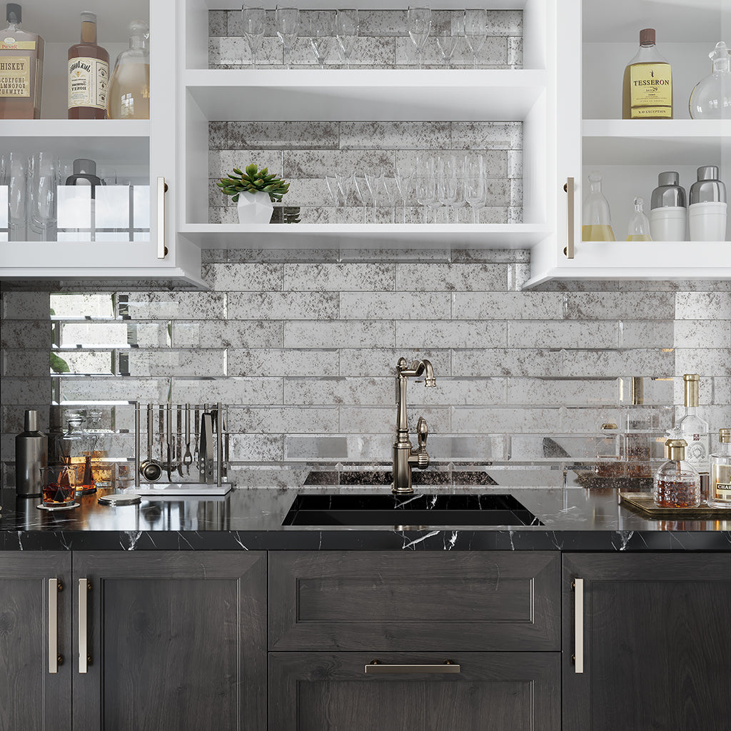 A glass tile backsplash for small kitchen is a modern, practical choice that’s available in a variety of colors, finishes, and patterns to brighten and open up the room. There are myriad options to complement any style of kitchen. Take Silver 3x12 Polished Subway Glass Tile, for instance. It’s the perfect fish for a contemporary kitchen, but can also lend itself to industrial, ArtDeco, or modern farmhouse interiors. Be it geometric mosaic or subway pattern, glass tile is watertight, heat-resistant, and easy to clean, making it a great pick for busy kitchens where beauty and durability are both essential.