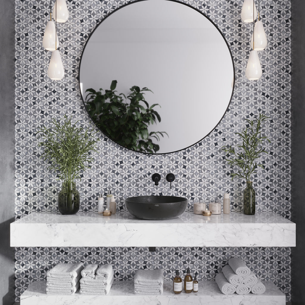 Floral Star Marble Glass Mosaic Tile