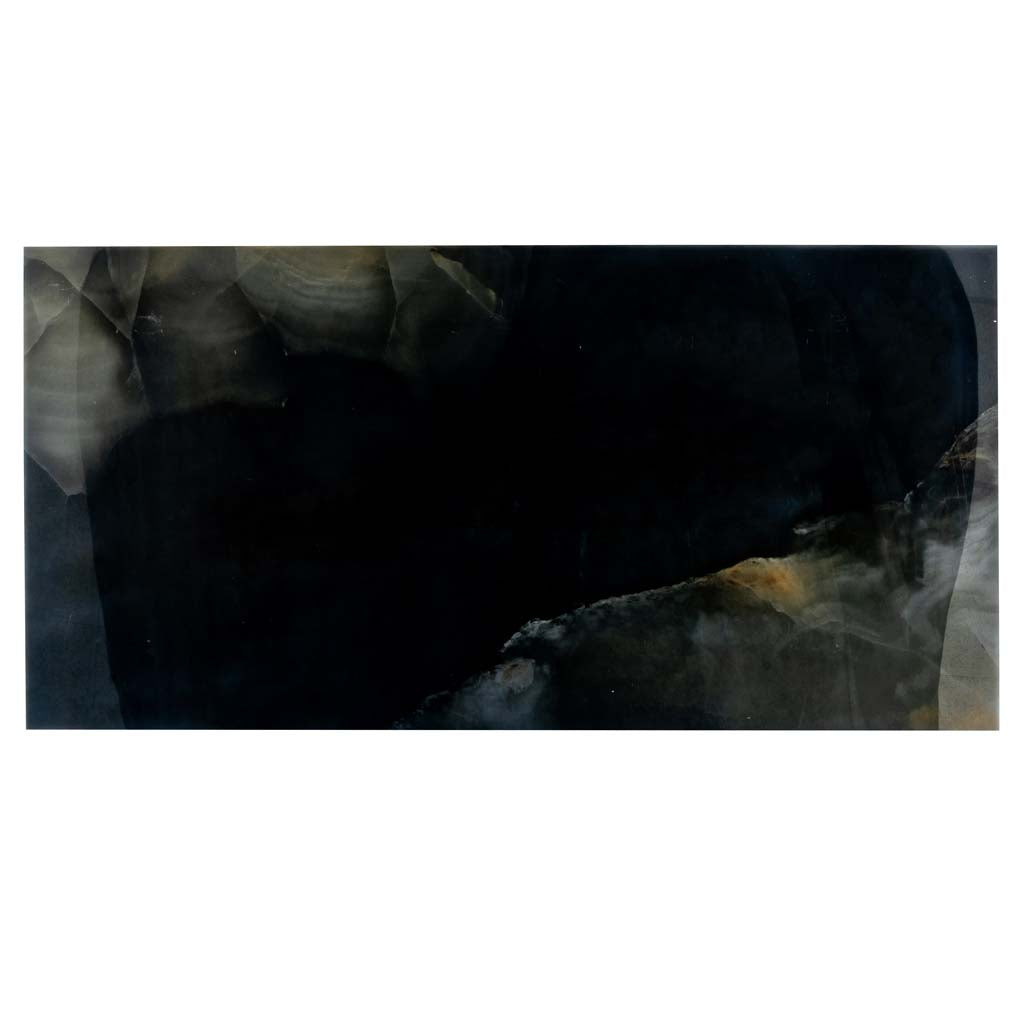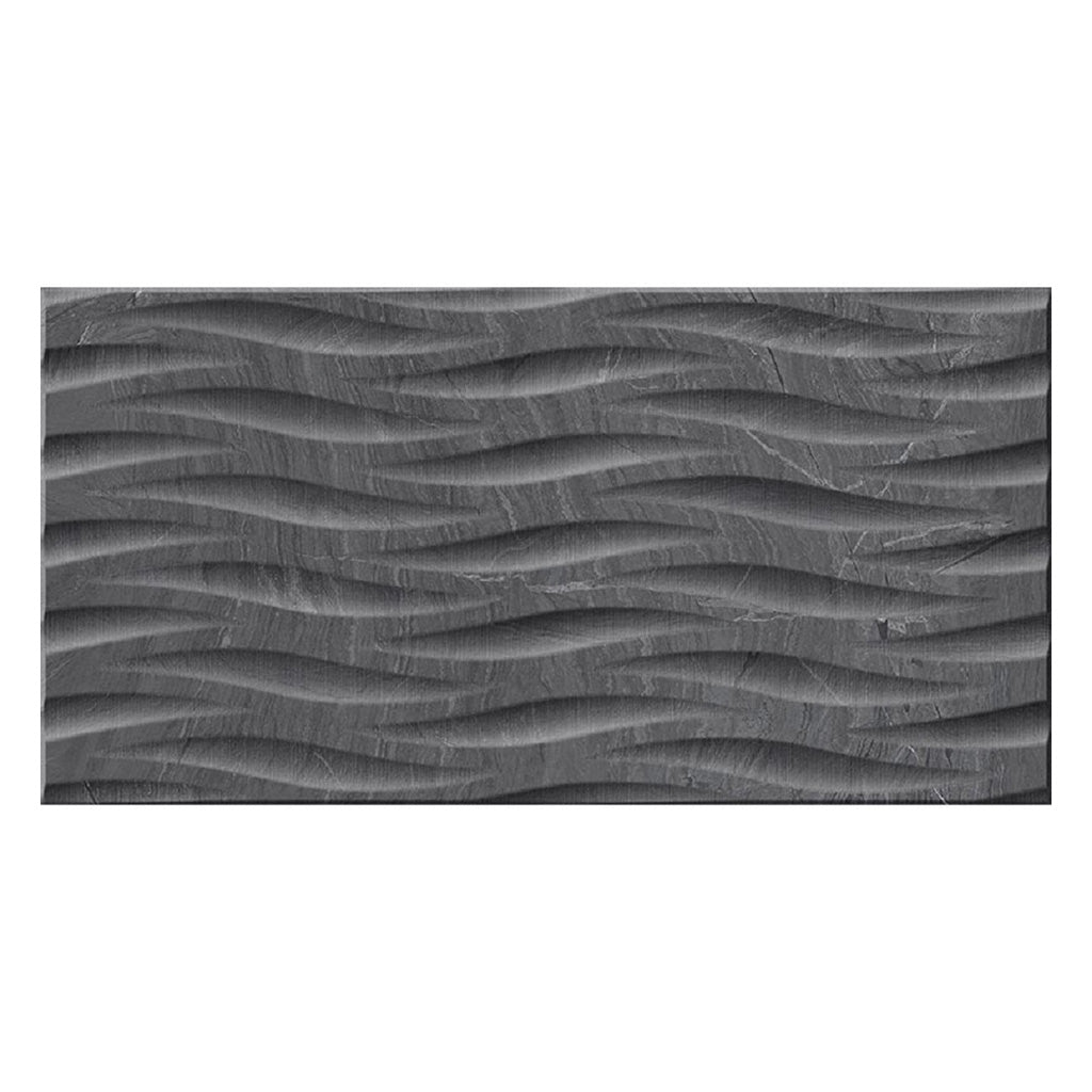 Make a statement with oversized porcelain tile. Oversized tiles yield minimal grout lines, providing the visual impression of a bigger more elegant space. The large surface area reduces visual clutter, allowing the bold black color to shine without overwhelming the space. Pair with minimalist fixtures and soft lighting to enhance the clean, modern aesthetic.