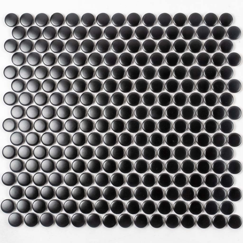 Black penny tile mosaics are a stylish solution for adding texture and visual interest to a bathroom. Their small, round shape creates a subtle pattern that's ideal on floors, shower walls, or used as an accent strip. With contrasting grout—like white or light gray—these small black tiles stand out and add a contemporary, graphic feel to the room. Regardless of how you use them on a total surface or in particular areas like a backsplash, black penny tiles give timeless beauty and hand-finished texture to any black tile bathroom design.