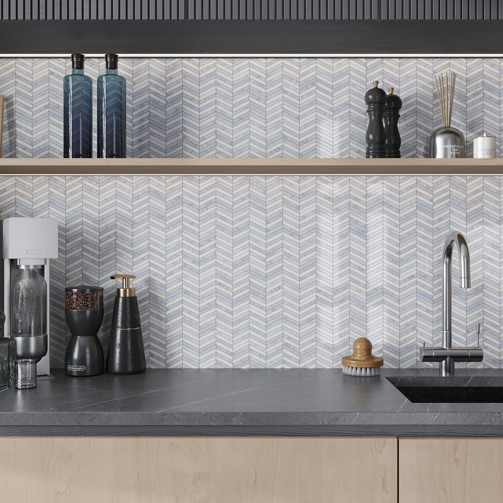 Backsplash and floor tile shapes and patterns help create interest, balance, and harmony. In the same breath, they can set the direction for how you decorate your space.