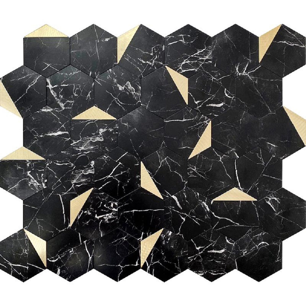 For a quick and easy upgrade, peel and stick mosaics, such as our Black Gold 12x12 Honed Hexagon PVC Peel & Stick Tile, offer the beauty of traditional tile without the mess or labor of a full installation. Perfect for renters, DIY beginners, or homeowners craving an instant refresh without the commitment.