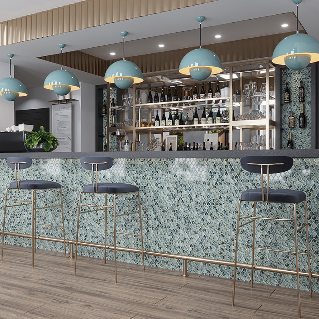 Fish scale tiles, or referred to as mermaid or scallop, impress with their whimsical shape -and are a beautiful feature for an unconventional backsplash design. In a shiny finish and ocean-inspired hues, designs like Blue 11x11 Glossy Fan Fish Scale Glass Mosaic Tile will add a sense of enchanting movement to the wall above contrast white cabinets.