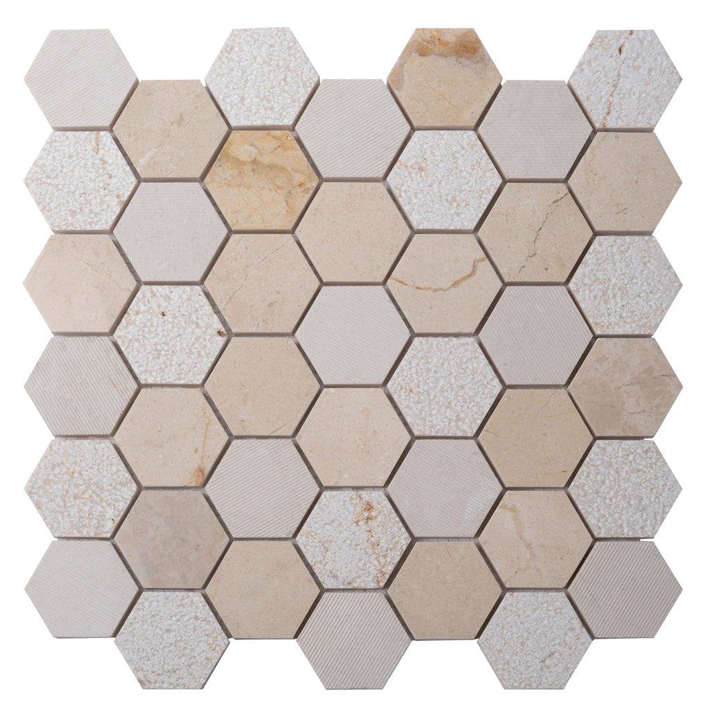 Mosaics in patterns like hexagon, chevron, penny, and herringbone are trendy and offer visual interest to the kitchen backsplash with white cabinets. Large format tiles are also a sought-after choice for a seamless appearance in contemporary settings.