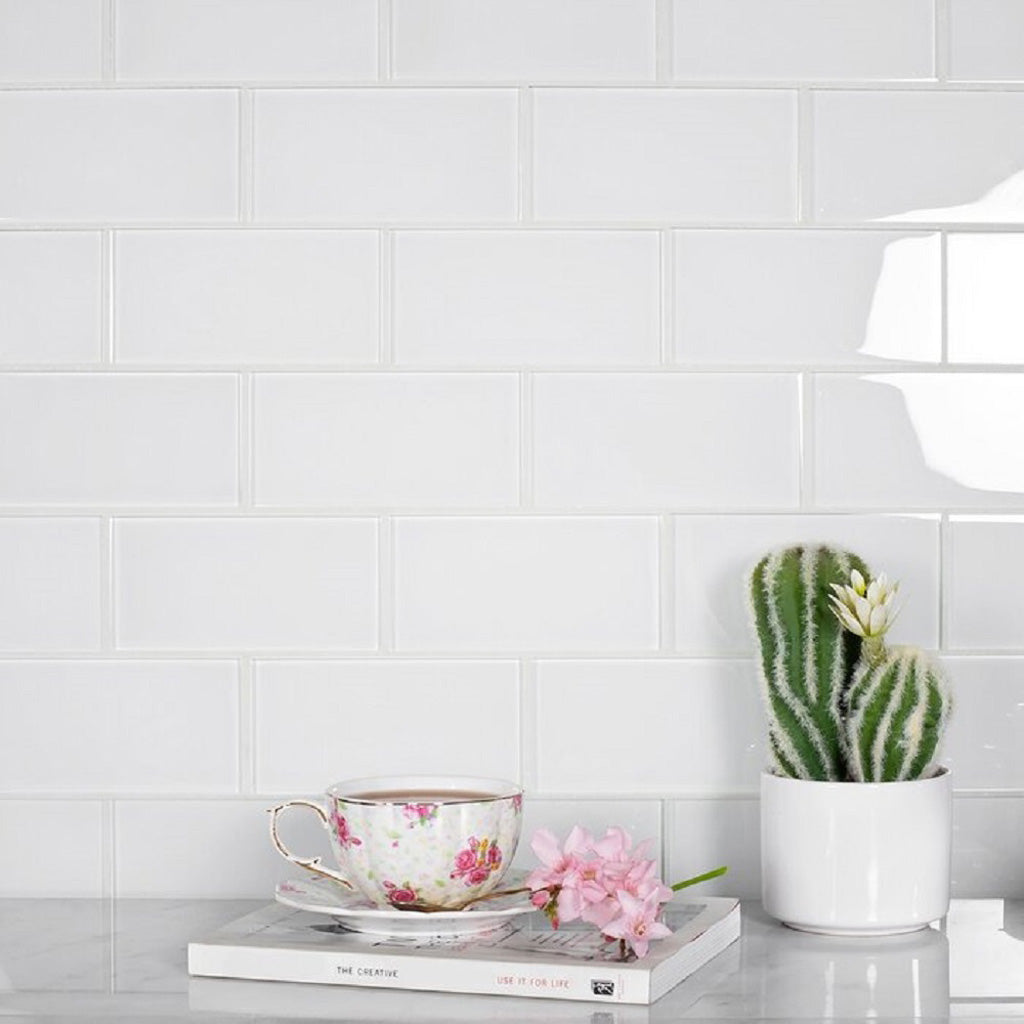 Both finishes work well with white cabinets. Glossy tiles reflect light and brighten up the rooms, ideal for small or dimly lit kitchens. Matte tiles have a subdued, refined look and cover smudges and scratches better.