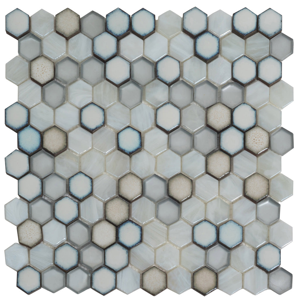 Glossy Hexagon Recycled Glass Mosaic Tile