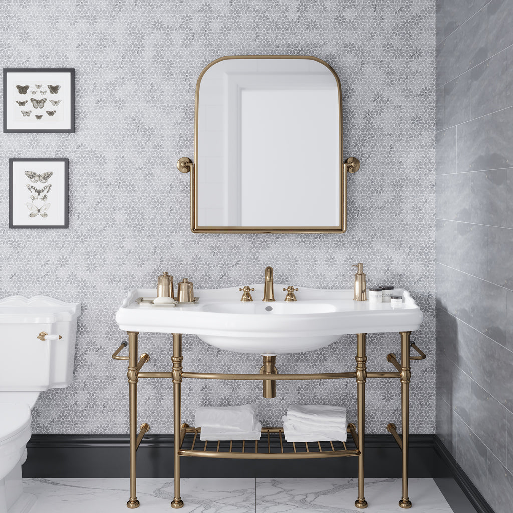 White geometric tile is a stylish way to add a delicate pattern and structure to a bathroom while keeping the space looking airy and light. Geometric tiles—whether they are hexagons, chevrons, diamonds, or interlocking shapes—give a bathroom a customized appearance without being overpowering. The room feels larger thanks to the clean white finish, which is particularly crucial in bathrooms that are smaller or have less natural light. Geometric tiles add opulence and functionality to your design when used as part of a well-thought-out white bathroom decor scheme.