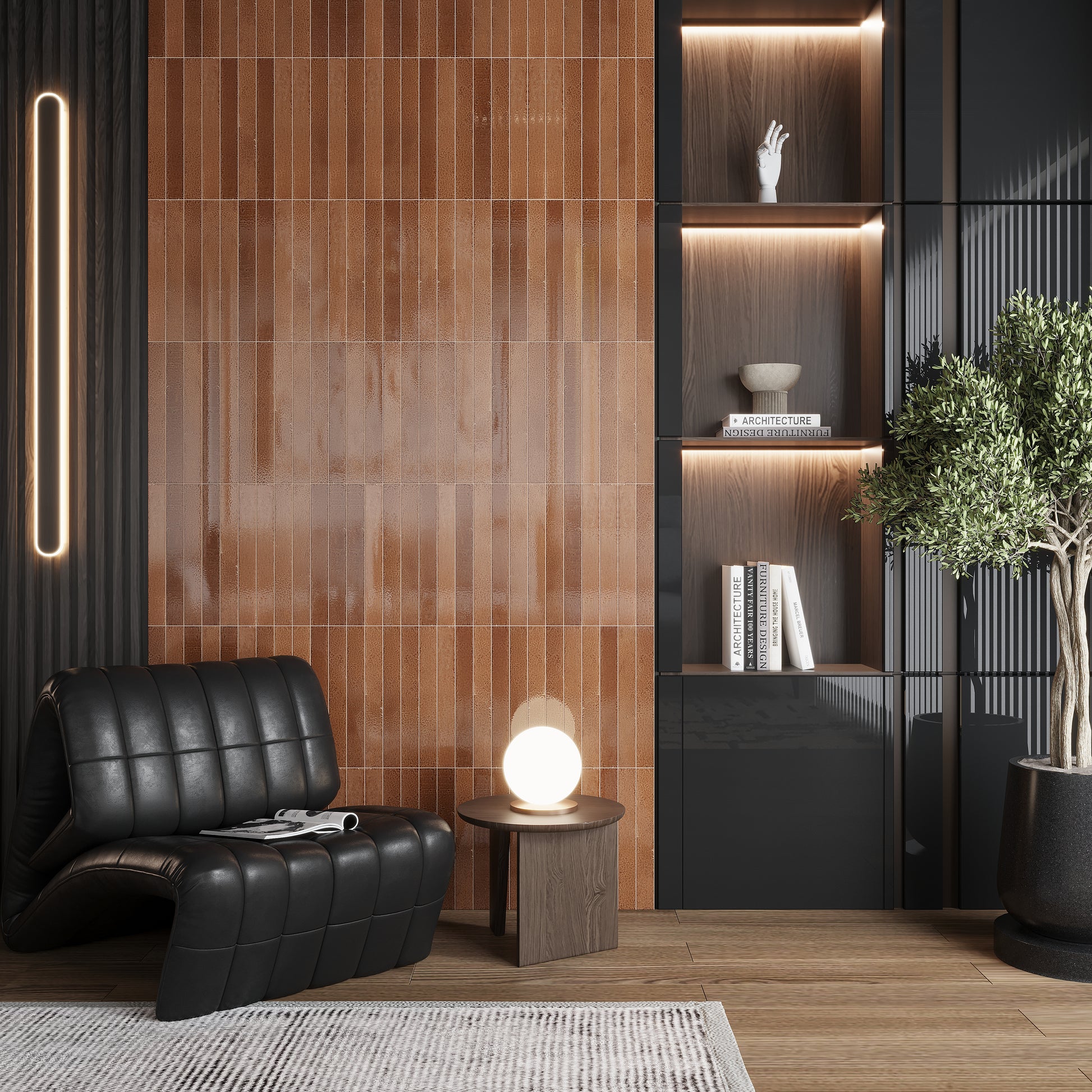 Terra Mocha 2x16 Glossy Zellige Subway Ceramic Tile (50 pack, 10.76 sq ft/case)