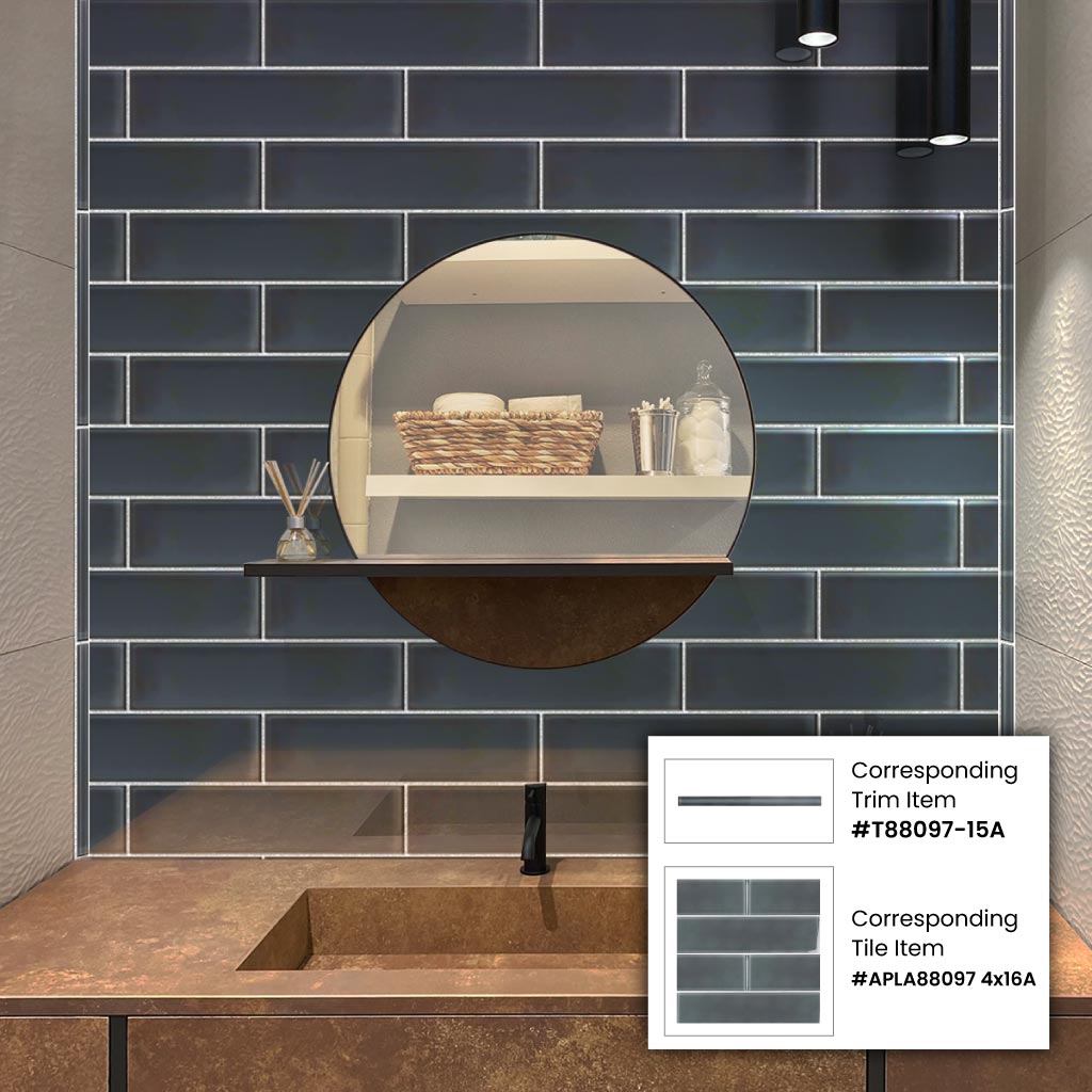 Our 1x12 dark gray pencil tile trim adds a stylish and contemporary look to an area of field tiles in residential or commercial settings. Designed for indoor and outdoor use, pencil tile trim provides a shiny edging piece to walls and backsplashes. Its slender profile and glossy finish make it useful in defining a tiled area or creating smooth transitions between tile patterns.