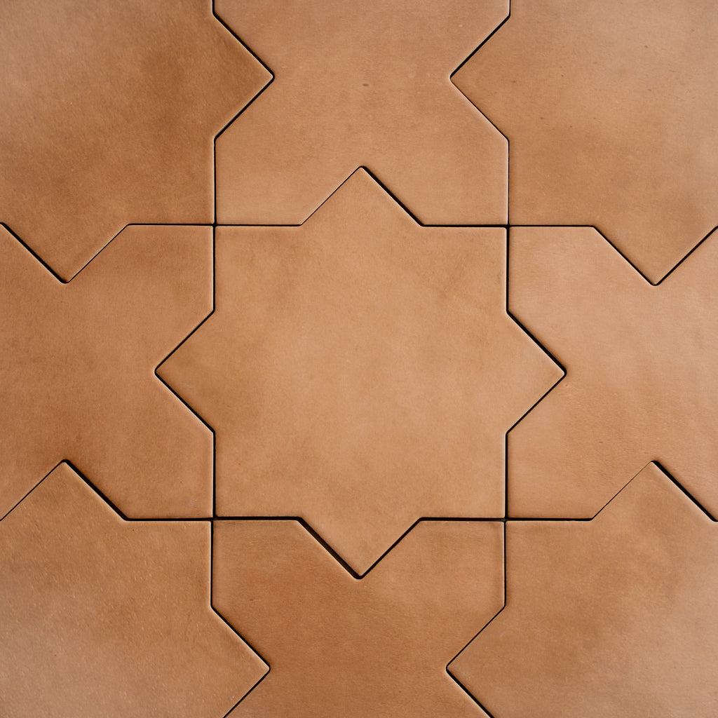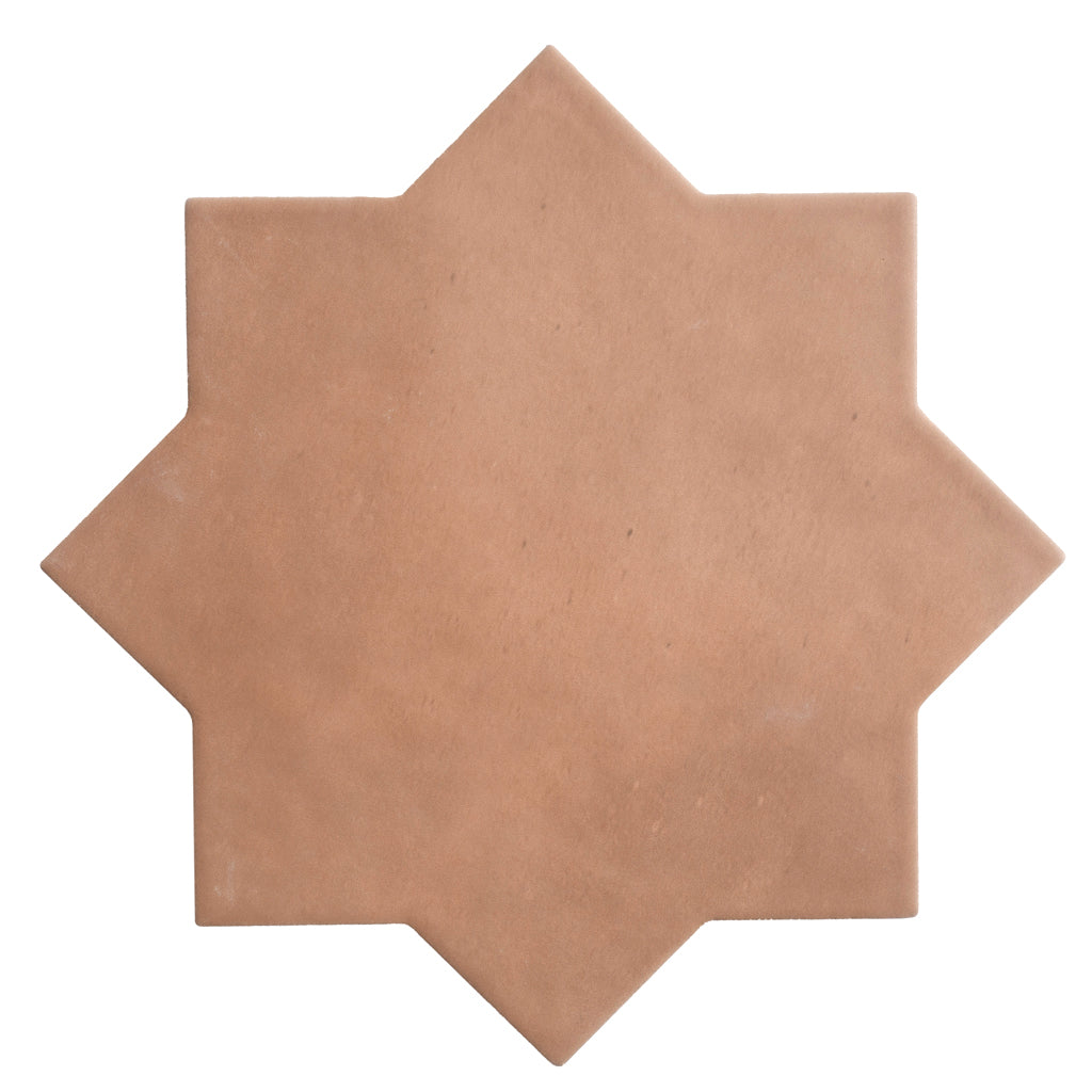 A warm terracotta matte finish meets classic design with this eight-pointed star porcelain tile. Its earthy, clay-like tone creates a welcoming and timeless feel, perfect for adding character to both modern and rustic interiors. The star shape brings a touch of bold geometry, giving you endless creative options for patterns that feel fresh yet grounded.