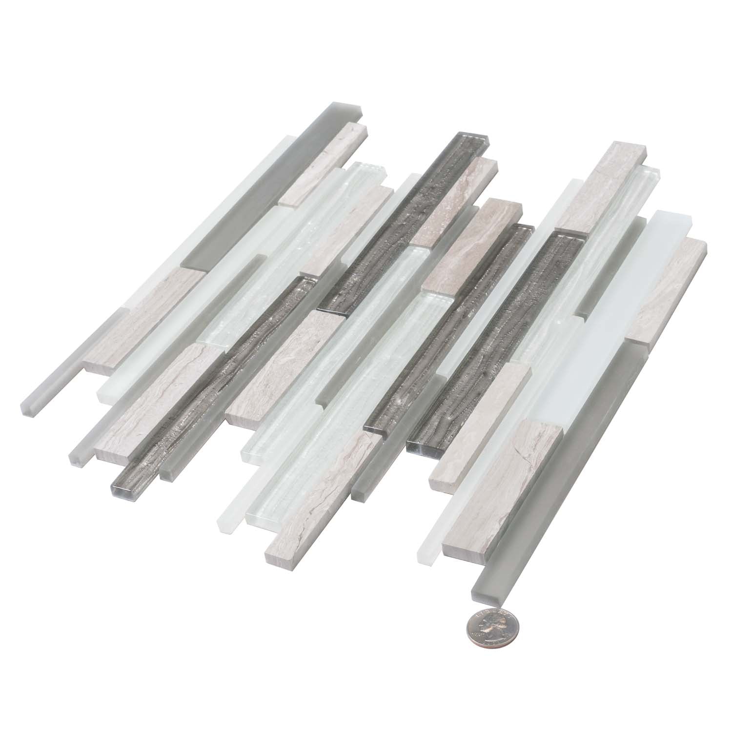 Yes, glass tiles are trendy and mostly preferred by many people. Moreover, dual finishes like matte and polished are highlights of this particular glass and stone linear pattern tile.