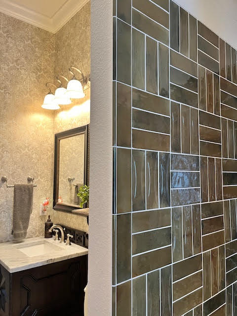 This unique tile in dark olive hue adds a warm and inviting appeal to any setting. Inside the kitchen, it forms a striking and sophisticated backsplash that pairs well with white cabinets, warm wood tones, or brass hardware for a contemporary and classic appearance. In the bathroom, olive green tile bathroom produces a spa-like serenity when paired with natural stone countertops or crisp white vanities. Whether used as a full feature wall or a quiet accent, the rich green color brings warmth and depth, and is a top pick for modern and vintage-inspired designs.