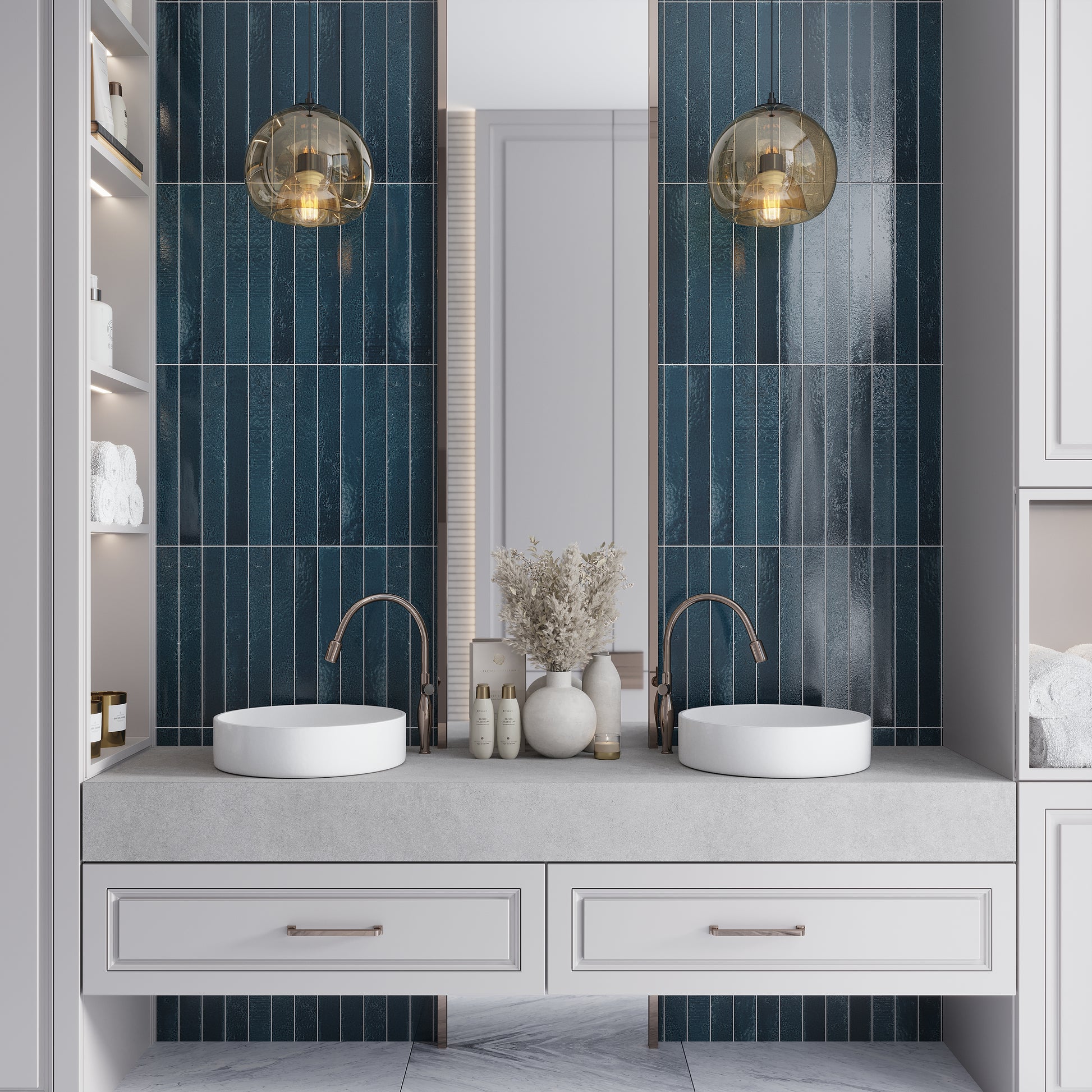 Teal Green 2x16 Glossy Zellige Subway Ceramic Tile (50 pack, 10.76 sq ft/case)